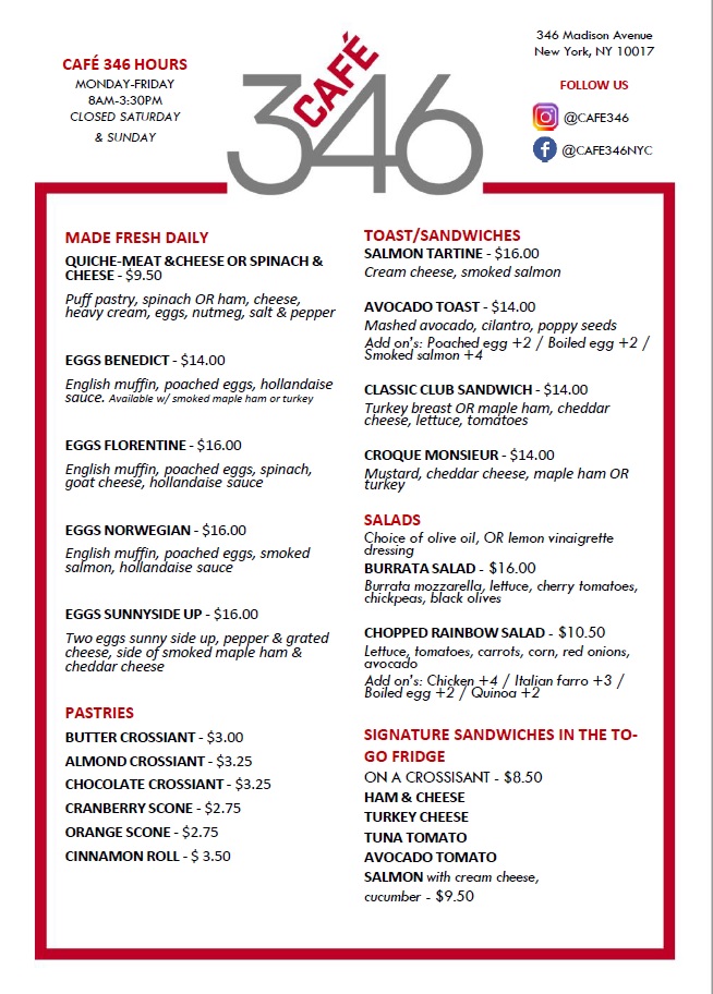 Cafe 346 Menu